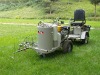 1. Engine: Japanese Robin6. 0HP or Honda 5. 5HP four-stroke air-cooled gasoline engine. 2. Chassis: Firm welding frame, whose surface has been chrome-plated or sprayed anti-corrosion coating, equips with imported high-speed bearing which ensures the whole machine lightsome and more convenient. 3. Rubber wheel : The left and right back wheels are gas-filled vacuum wheels with pressure resistant, whose diameters are 350mm; the directional wheel is the special naturally modified rubber wheels with abrasion resistance, whose diameter is 190mm. 4. Front wheel guide arm: The direction device can lock the front wheel ensuring road-marking machine freely operation in straight or turning. 5. Guide rod: The telescopic guide rod can be freely adjusted to up, down, left and right. 6. Light and alarm function: The prepared high illuminating lamps provide convenience for the construction at night. The flash lights which can freely adjust the flicker frequency largely improve the safety in construction . 7. Paint pump: The new type diaphragm high pressure airless pump has big flow and stable pressure, whose max pressure is 20mpa (working pressure is 10-15 Mpa ) Max flow: 8. 5 L/min. 8. Paint tank: Capacity: 65L. There is a sieve in the tank, and air in-take sieve in the feeding port. 9. Spray gun: The double new type hand spray guns own hard side columnar reverse wastewater nozzle (17/25), which makes the site discharging very convenient and fast; the non-arc nozzle ensures the base line collimated. The 6m lengthening pipe which is installed with the machine can be used for abnormal spray, such as spray arrow-head, letter and so on. 10. Spray width: 100-450mm. 11. Size . Weight :1350mm (length, not including the heightening of handle )* 1000mm (width, not including the gun bracket )* 1000mm (height, not including the heightening of handle ). 185kg . Option for operator sitting chair ZT-II to realize self-propelled .